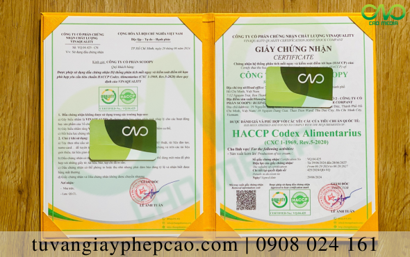 “Mẫu chứng nhận HACCP do CAO Media thực hiện cho khách hàng”