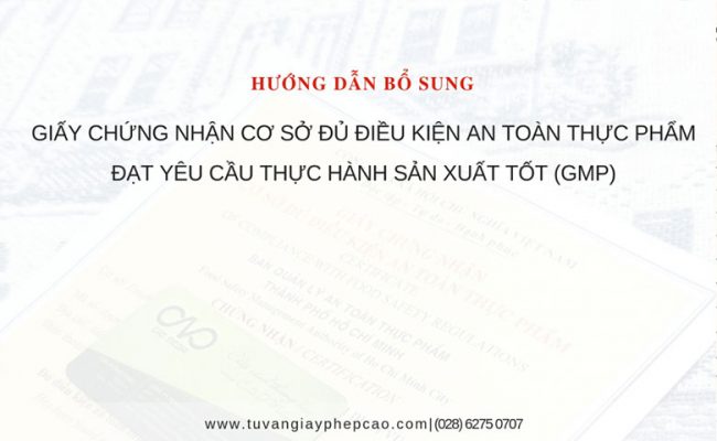 Hướng dẫn bổ sung Giấy chứng nhận cơ sở đủ điều kiện an toàn thực phẩm đạt yêu cầu Thực hành sản xuất tốt (GMP)