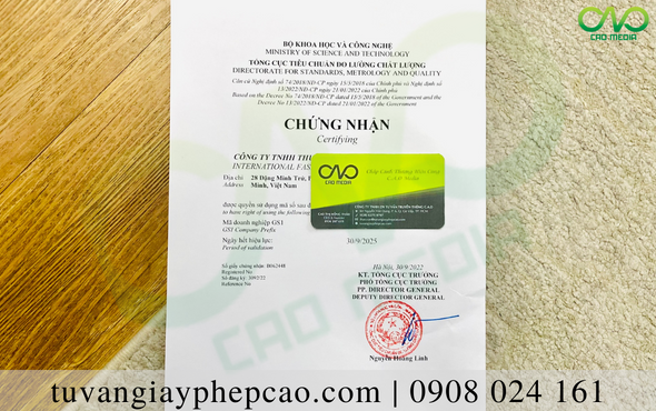 – Sau 7 – 10 sẽ có Giấy chứng nhận quyền sử dụng mã số do Tổng cục Tiêu chuẩn Đo lường Chất lượng – Bộ Khoa học Công nghệ cấp;